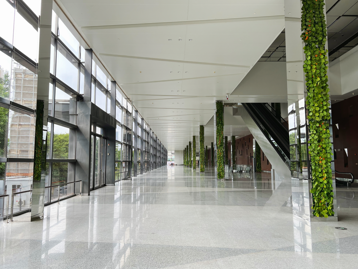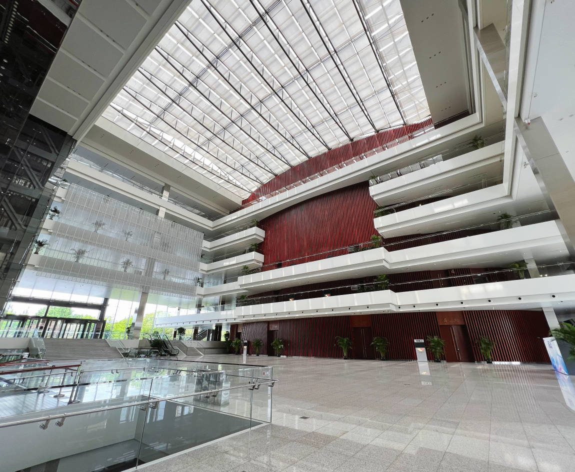 绿厅位于世博中心一层,建筑面积约2000㎡,七层挑高设计,玻璃外墙通透,采光视野俱佳。内设380㎡超大 LED 屏,核心功能包括高端礼宾接待、会议仪式、小型展览及文艺演出。